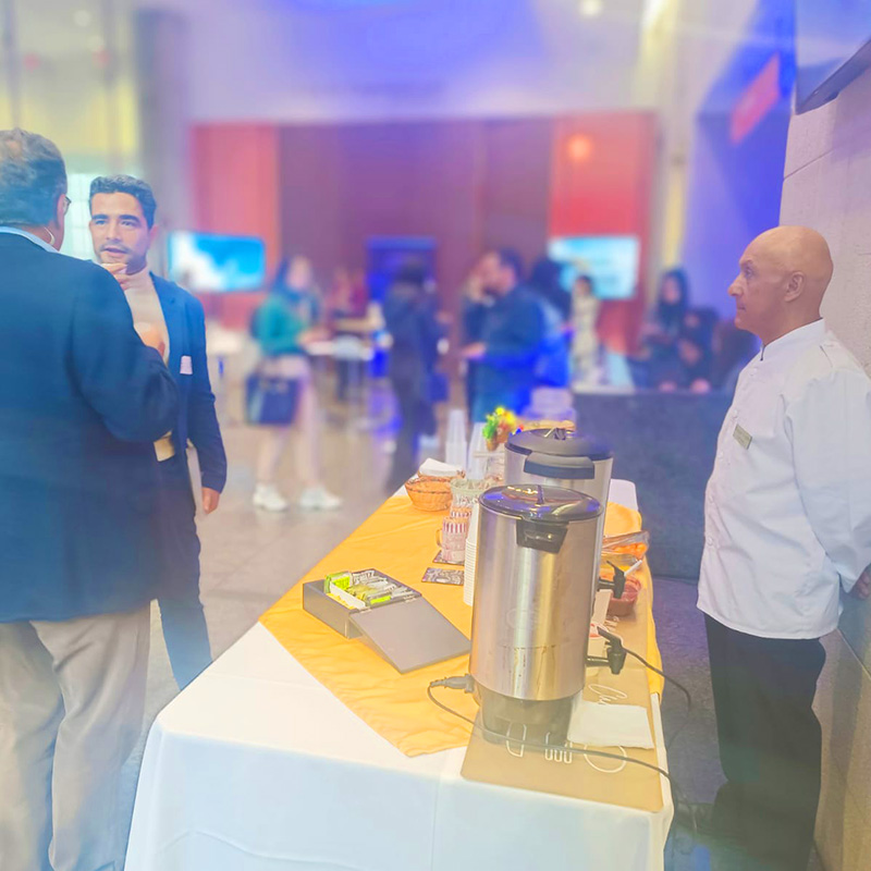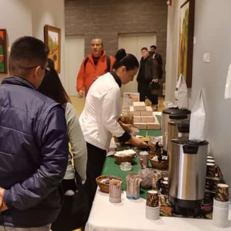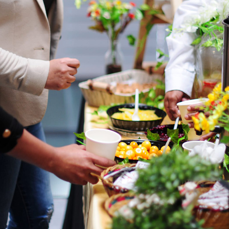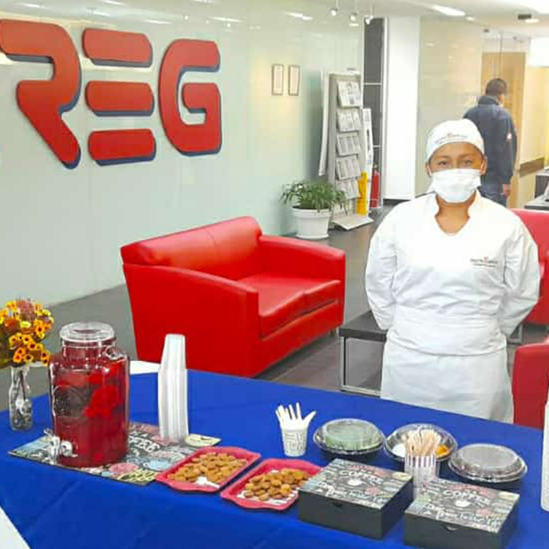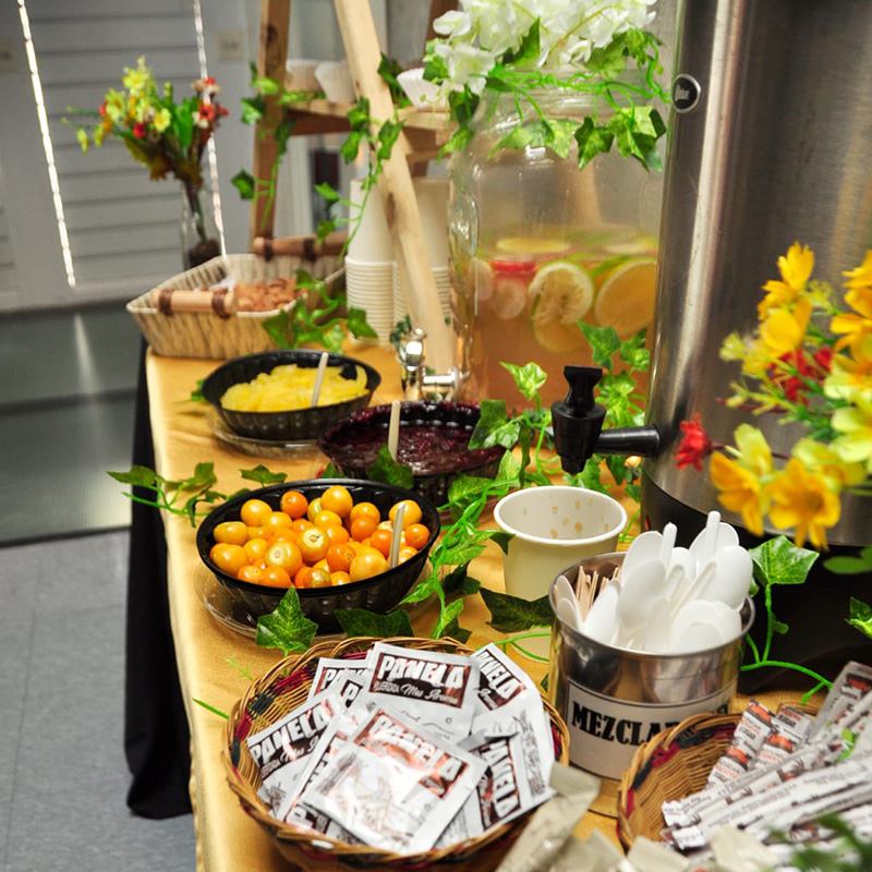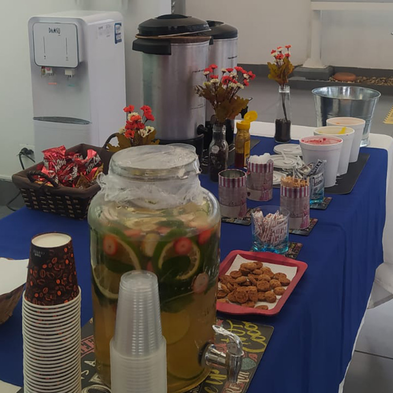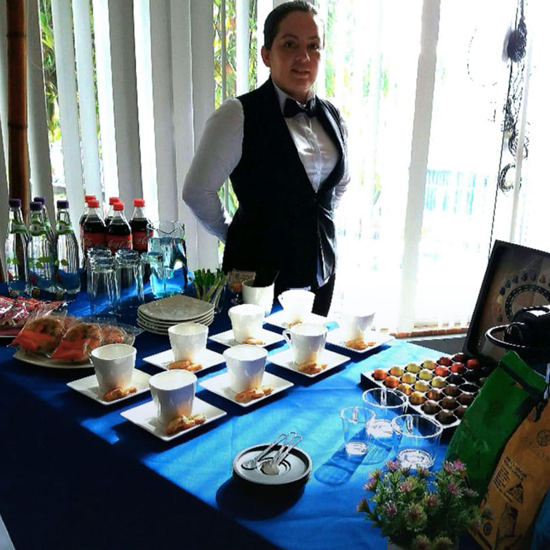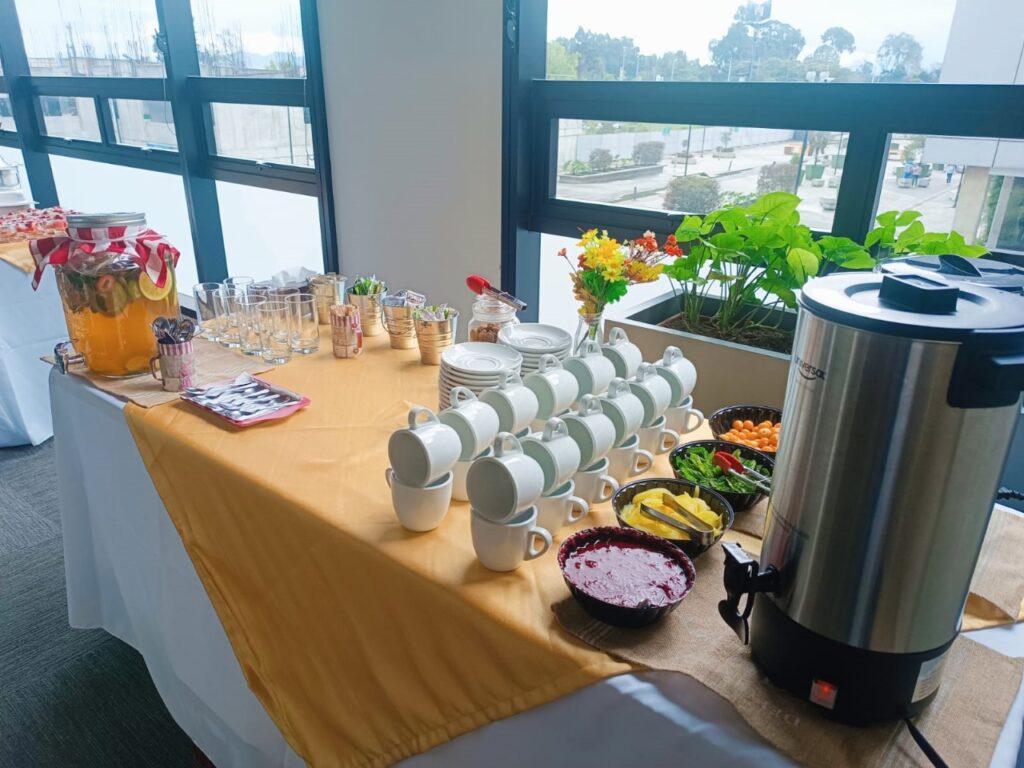 Adecuada para eventos masivos, conferencias, ferias, congresos y seminarios. Con bebidas frías y calientes, servido en desechables biodegradables.