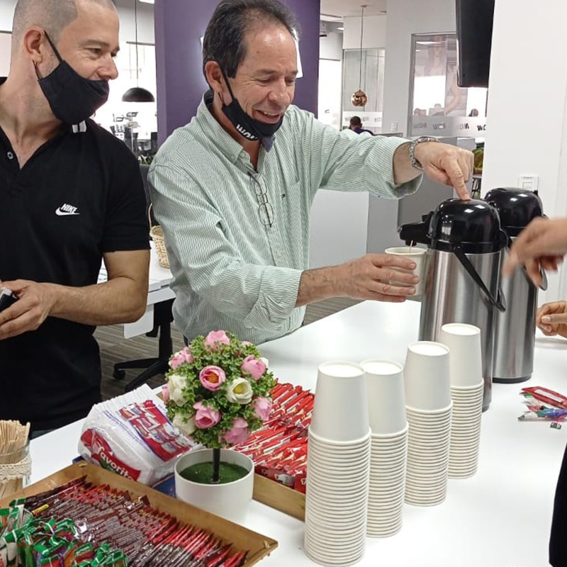 Contamos con cafés marca propia e insumos de cafetería para oficina (vasos, mezcladores, azúcar, aromática, etc.)